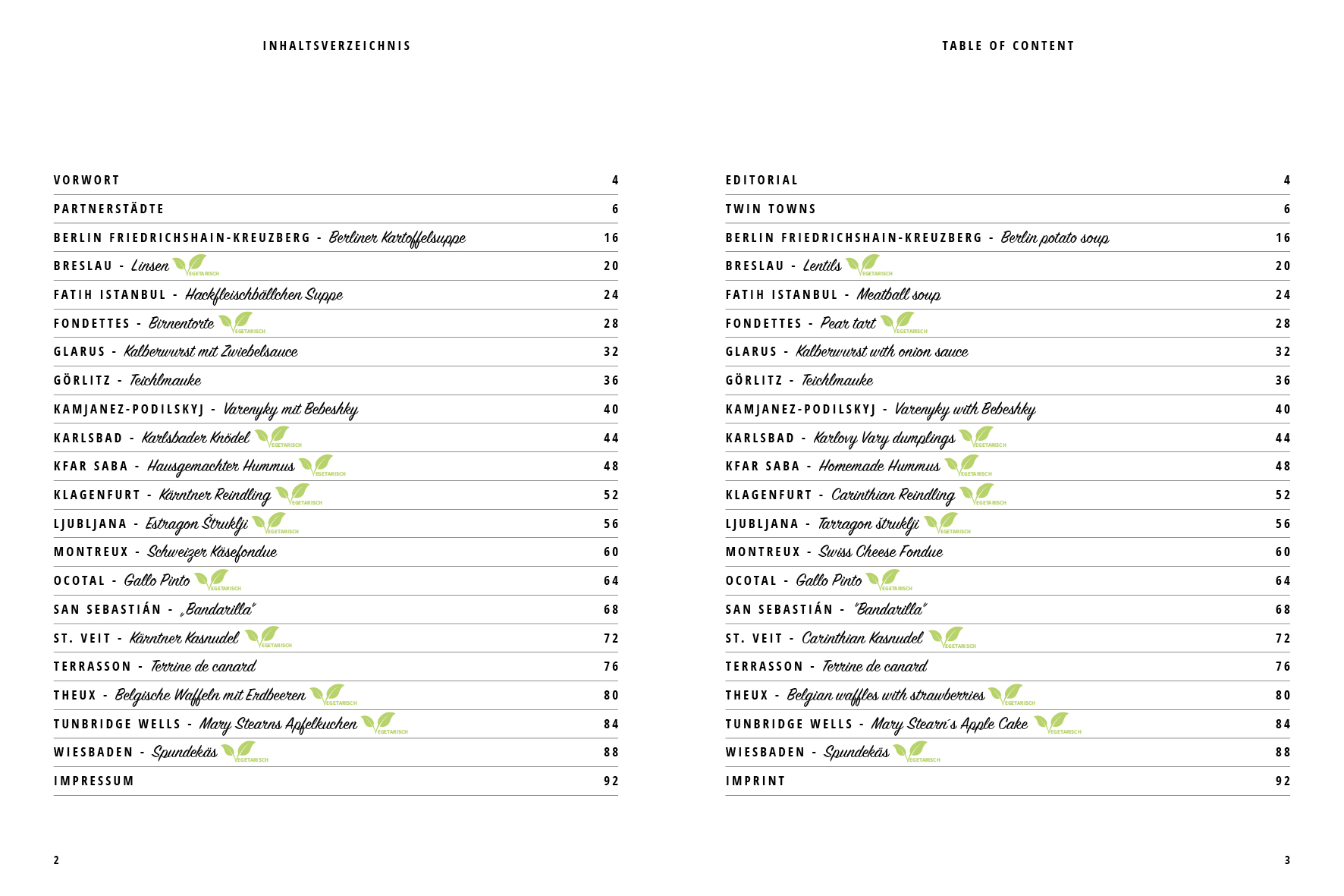Of course, you can’t travel the whole world to read every page. But this cookbook will at least allow you to explore the small world of Wiesbaden’s twin towns from a culinary perspective while learning a little more about them. Then, when you have “acquired a taste”, you may even want to visit one of our twin towns in person. We all need a change from our favourite recipes from time to time. A culinary change of scenery, so to speak. That is precisely what this book offers. And it goes without saying that all our twin towns are worth a visit! Our aim in selecting these recipes, which we did together with our twin towns and twinning associations, was to find recipes that were as simple as possible but still typical of each region. We wish you all the best in your kitchen, bon appétit, and happy travels – be they culinary or touristic.
