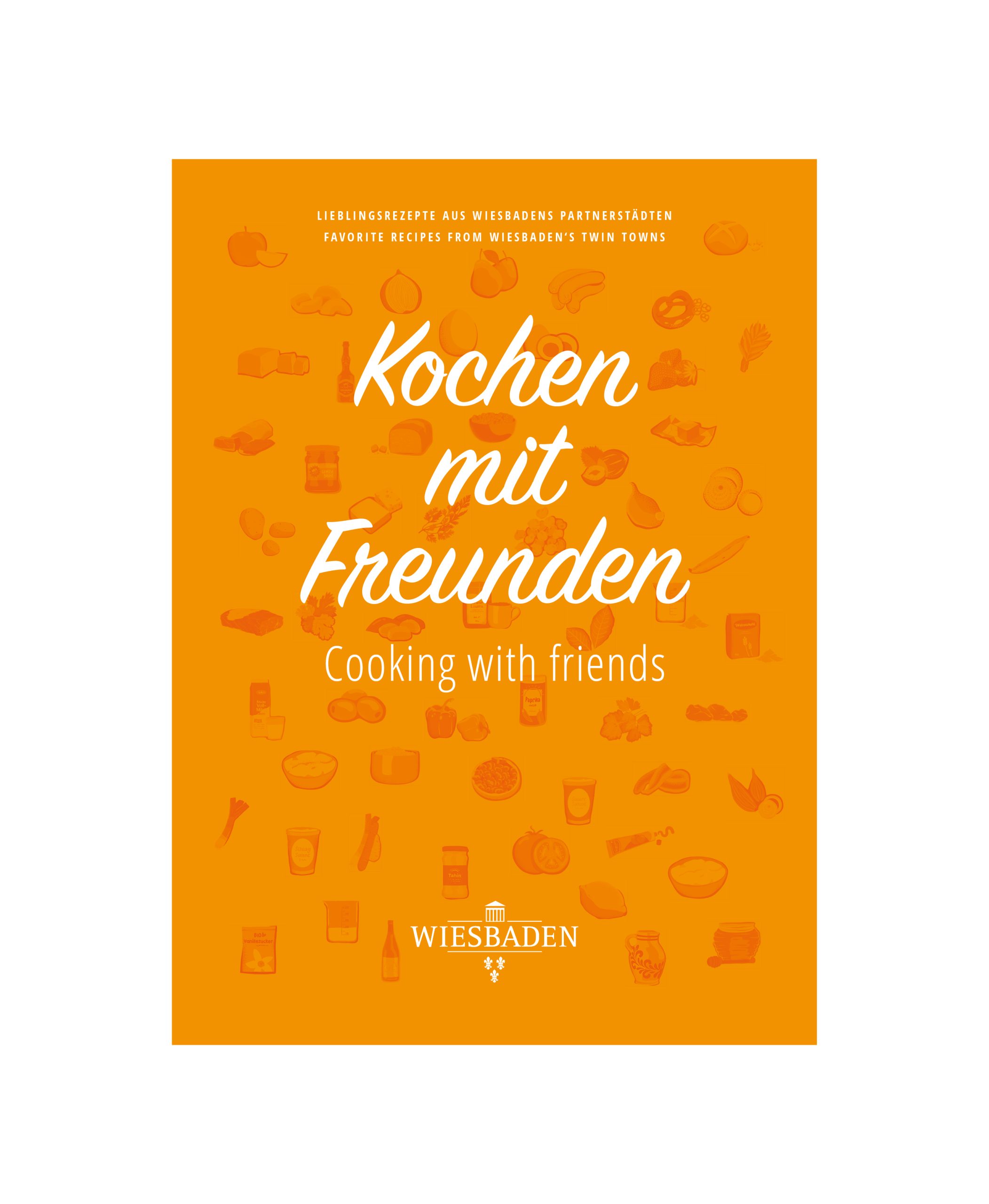 Kochen mit Freunden – Cooking with friends. Lieblingsrezepte aus Wiesbadens Partnerstädten – Favorite Recipes from Wiesbaden´s twin town. Mit diesem Kochbuch können Sie die Wiesbadener Partnerstädte kulinarisch erkunden und zugleich ein bisschen mehr über diese Städte erfahren. Wenn Sie dann „auf den Geschmack gekommen sind“, haben Sie vielleicht sogar Lust, eine der Wiesbadener Partnerstädte selbst zu besuchen.